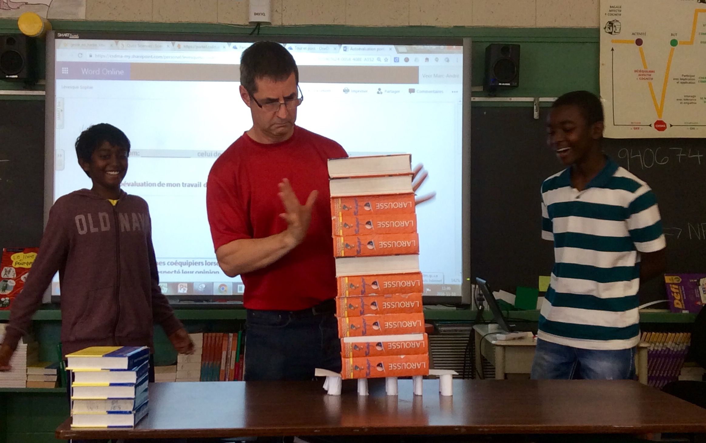 En sciences, nos élèves ont eu la chance de concevoir et construire des ponts en papier. Le but était de fabriquer un pont qui pourrait supporter la plus grande masse possible. Voici les résultats de cette expérience!